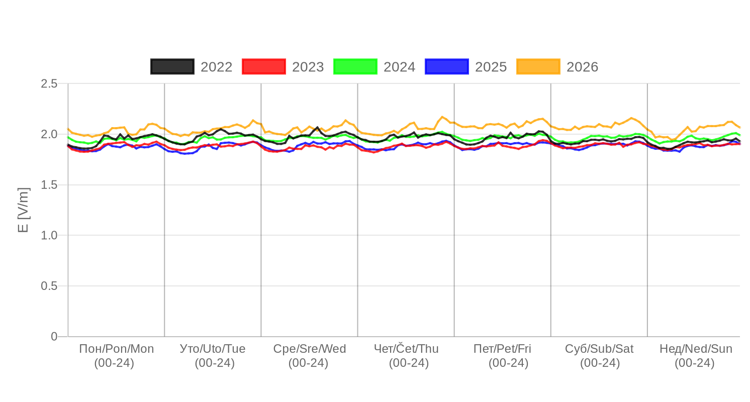 Дневне промене ниво поља - викенд (у последњих пет година)